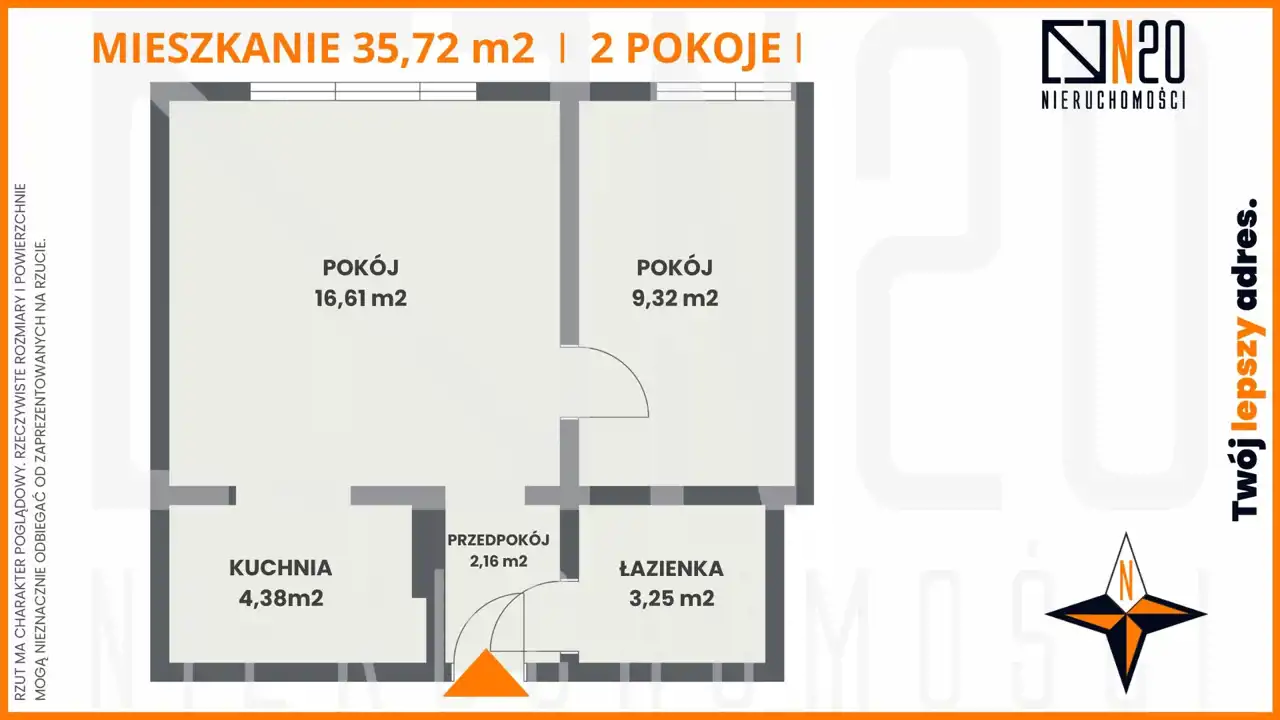 - Charakterystyka mieszkania 35.72 m2, 2 pokoje