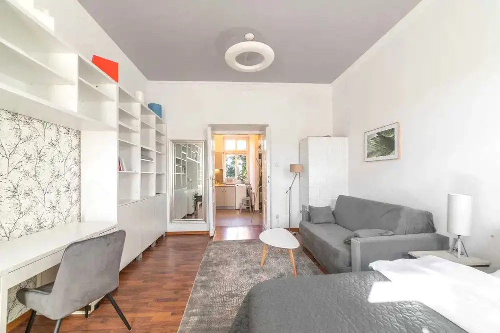 Mieszkanie o powierzchni 32,5 m2 usytuowane na parterze dwupiętrowej zadbanej kamienicy z lat 50-tych.