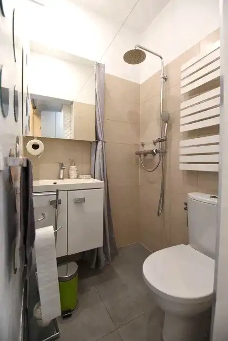 Łazienka z kabiną prysznicową oraz wc.