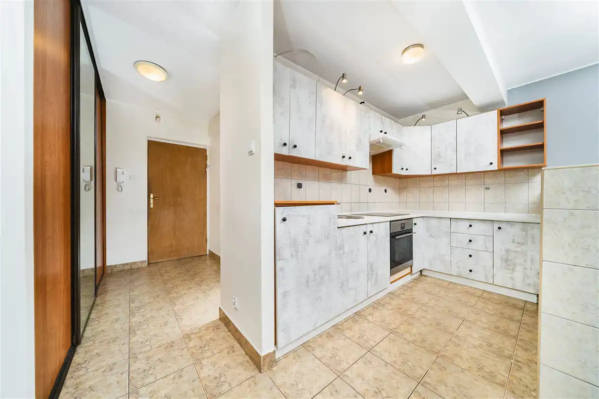 Przestronne mieszkanie o powierzchni 36,7 m2 mieszczące się na siódmym piętrze z ośmiu w bloku z 2000 roku. Mieszkanie jest do odświeżenia. Częściowy remont na mieszkaniu był robiony częściowy w 2017 roku. W przedpokoju znajdują się duża garderoba. W kuchni jest umeblowana i posiada płytę indukcyjną, piekarnik i okap.