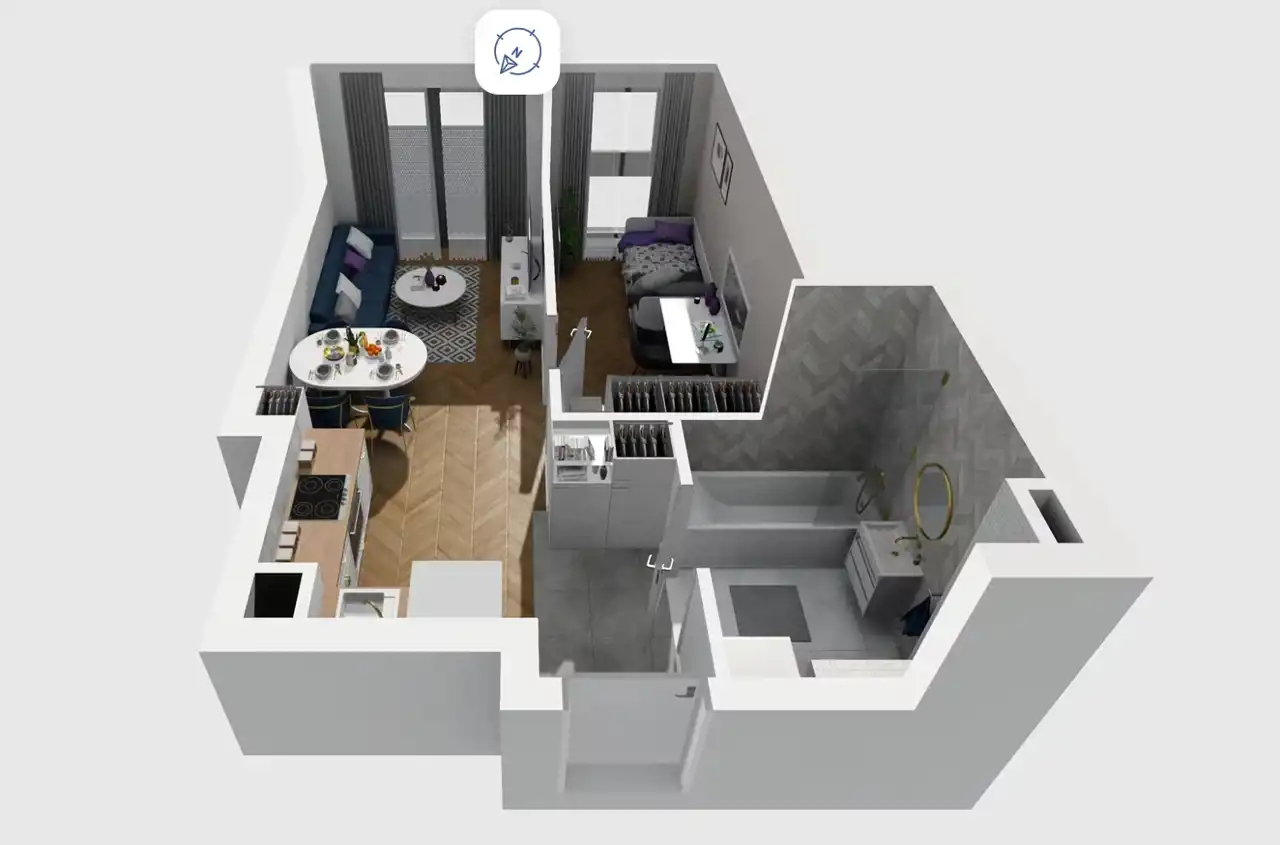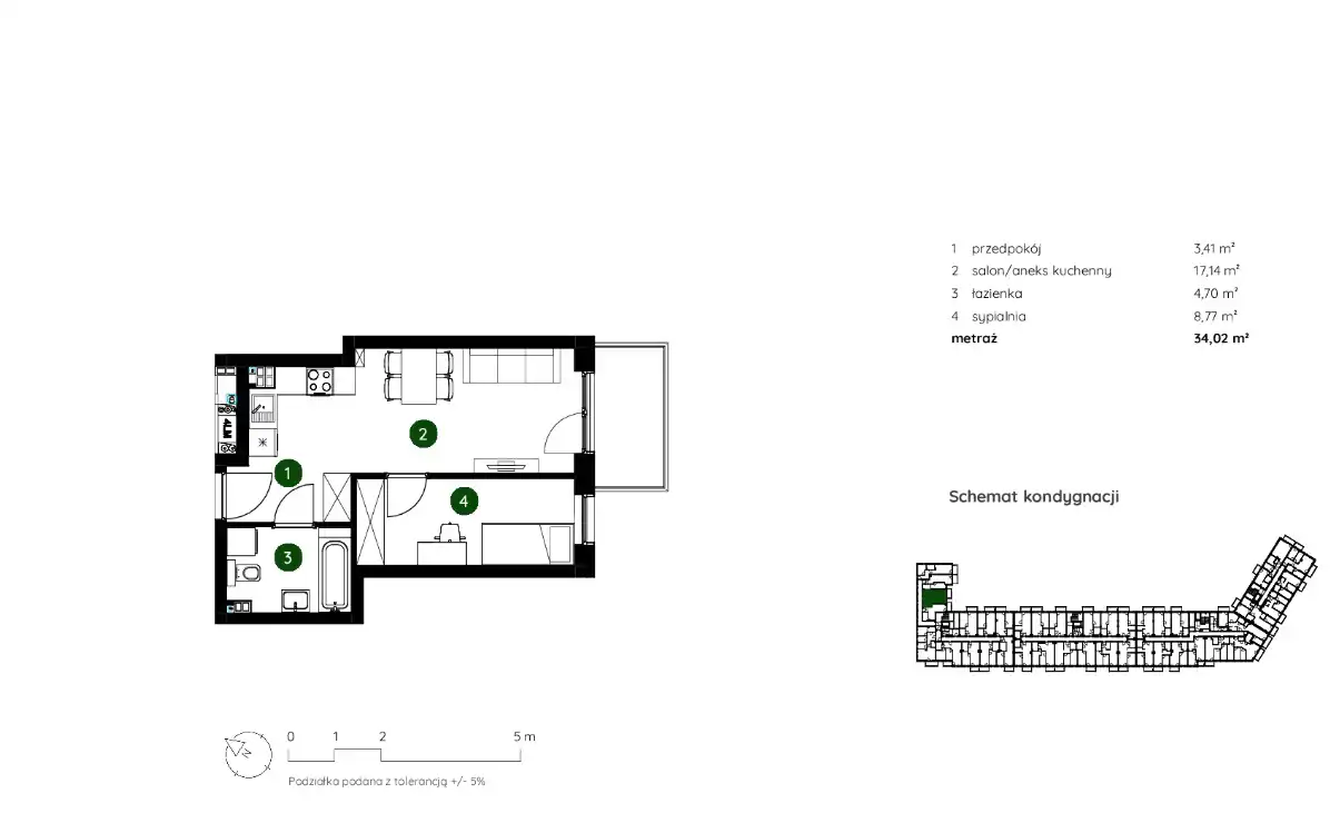 - Charakterystyka mieszkania 34.02 m2, 2 pokoje