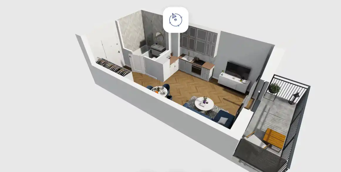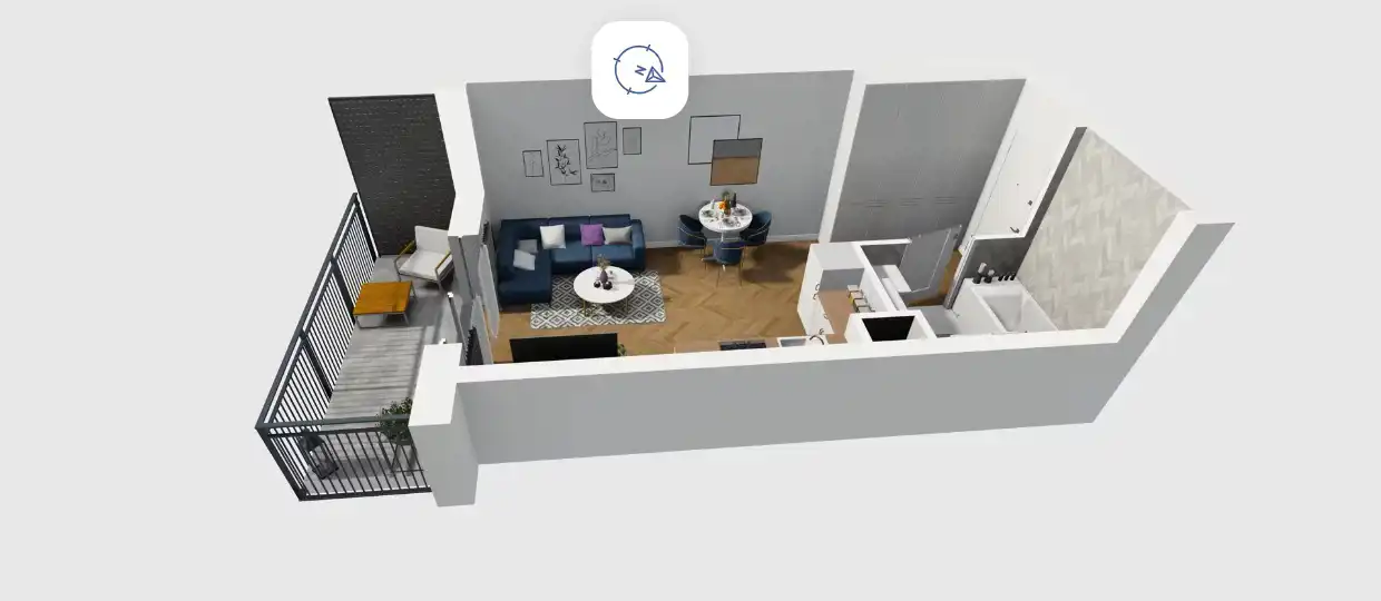 Mieszkanie składające się z salonu z aneksem kuchennym , przedpokoju, łazienki oraz balkonu