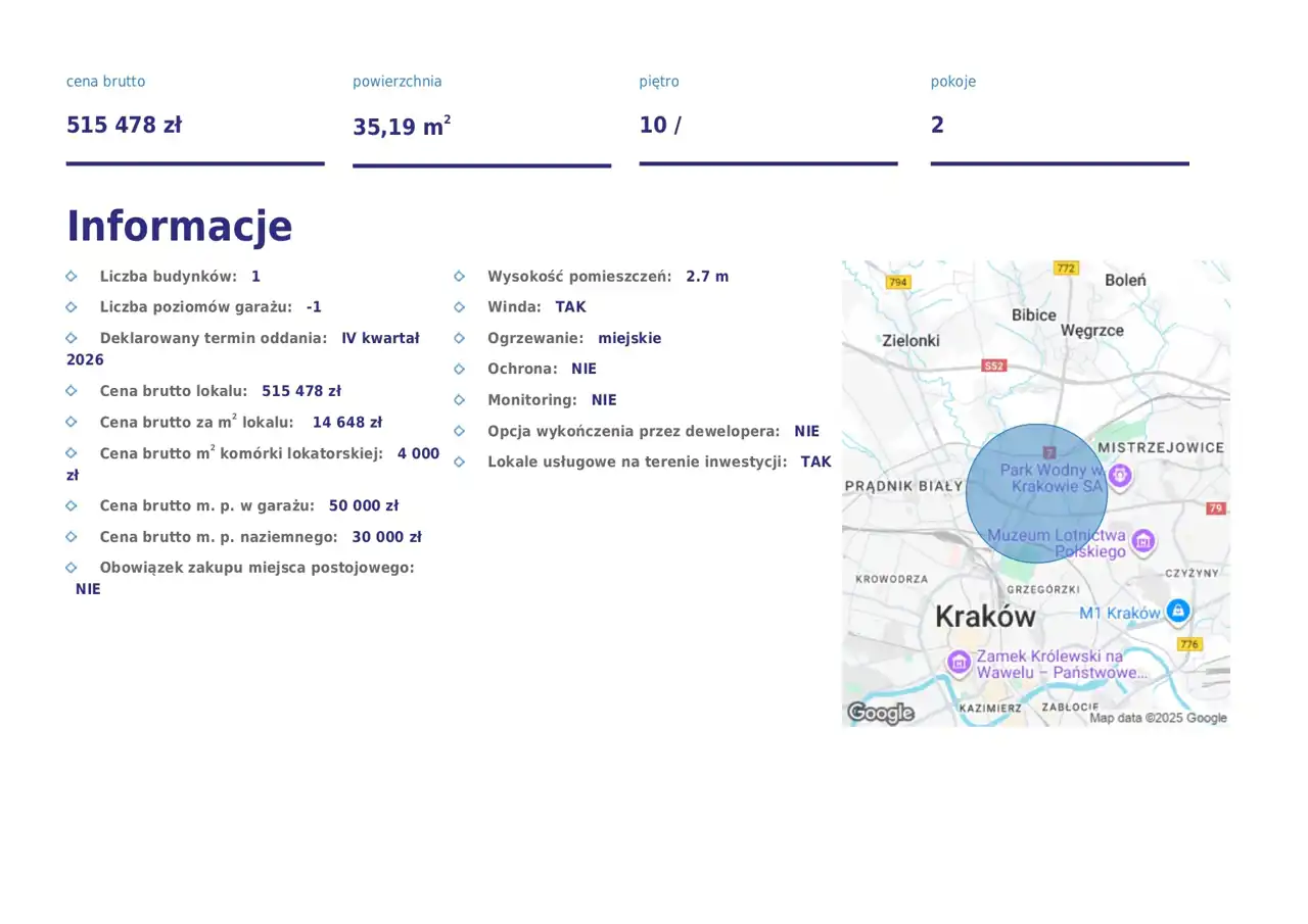 Cena: 515 478 zł | Metraż: 35,19 m² | Pokoje: 2 | Piętro: 10 | Odbiór: IV kw. 2026 | Winda: TAK | Cena/m²: 14 648 zł/m².