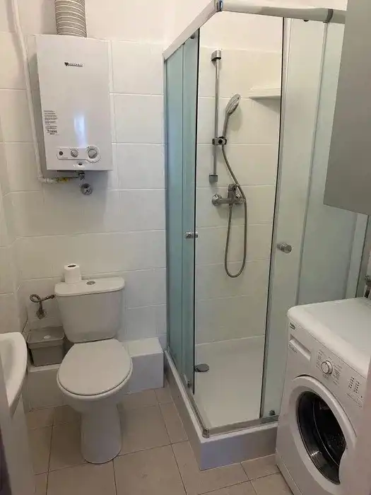 - Media Ogrzewanie: C.O. miejskie; Woda: ciepła - piecyk gazowy