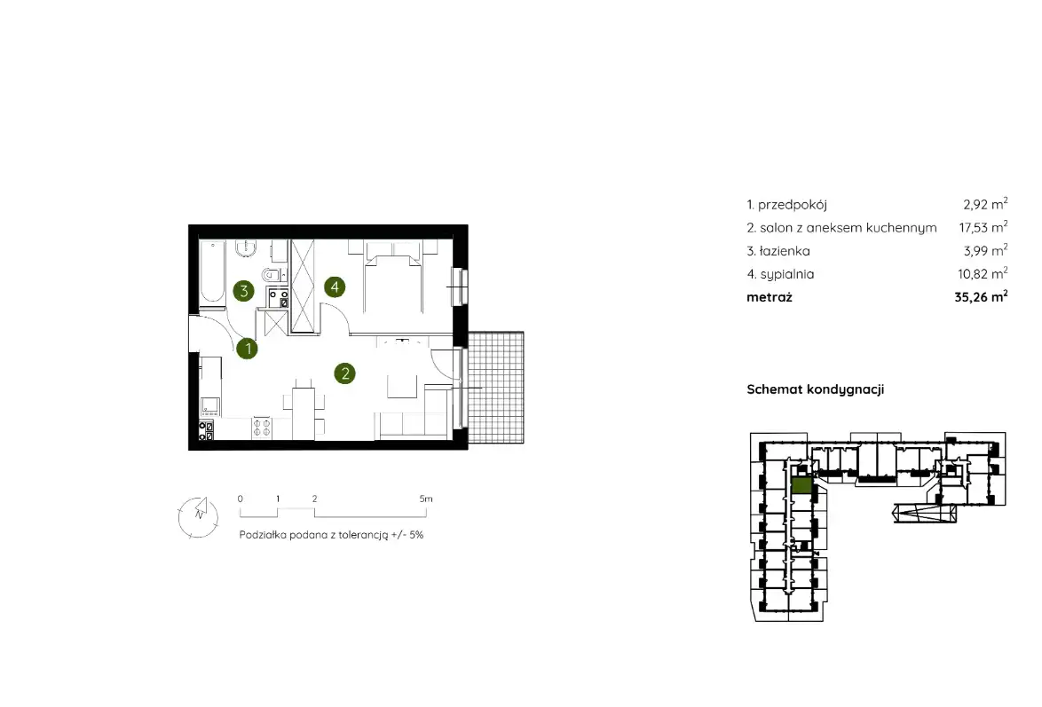 - Charakterystyka mieszkania 35.26 m2, 2 pokoje