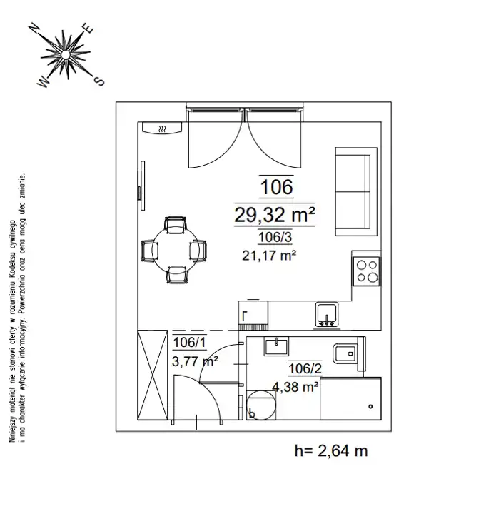 - Charakterystyka mieszkania 29.32 m2, 1 pokój
