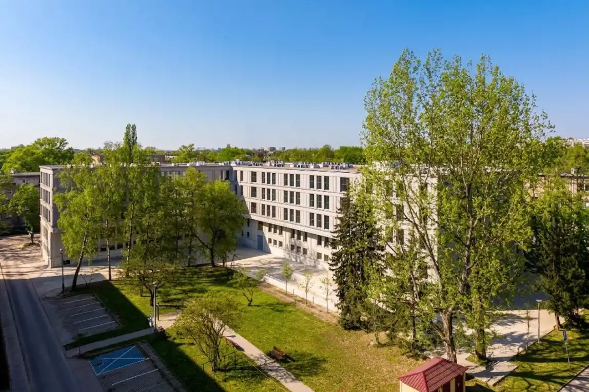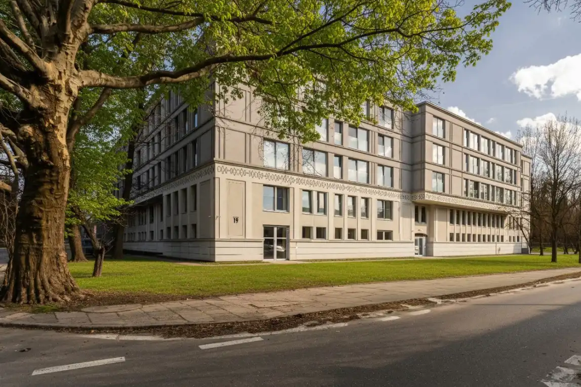 - Budynek charakteryzuje się harmonijną architekturą