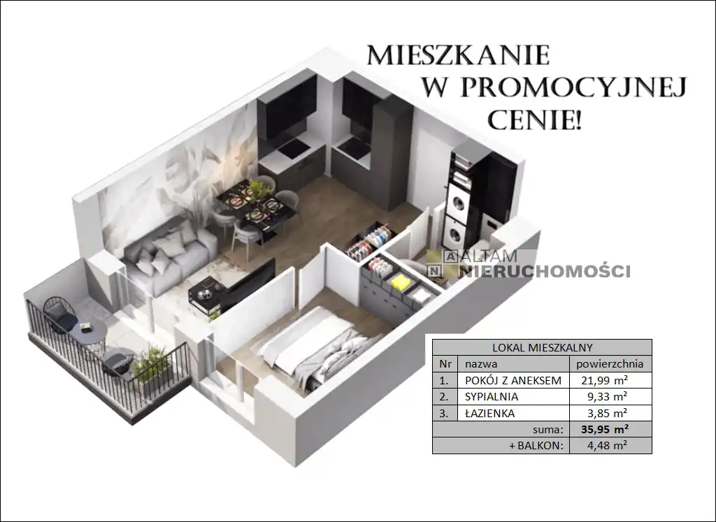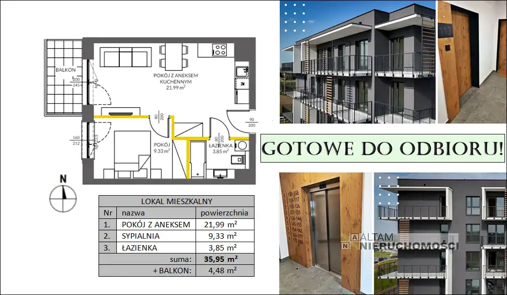- Charakterystyka mieszkania 35.95 m2, 2 pokoje
