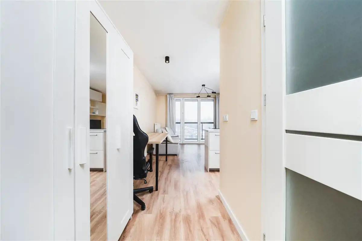 Funkcjonalna oraz komfortowa kawalerka, znajdująca się na 9 piętrze 10 piętrowego budynku z windą, który został wybudowany w 2018 roku. Mieszkanie o powierzchni 26,63 m2. Mieszkanie posiada balkon. Kawalerka wyróżnia się wyjątkowym, otwartym widokiem, który jest jednym z jego kluczowych atutów. Ogrzewanie oraz ciepła woda z mpec-u. Czynsz w wysokości około 350 zł miesięcznie przy jednej osobie. Do tej kwoty należy doliczyć koszt zużycia prądu oraz internet. W budynku znajduję się rowerownia/wózkownia. Mieszkanie własnościowe z czystą księga wieczystą. Mieszkanie jest bardzo jasne oraz słoneczne z wystawą na stronę południową.