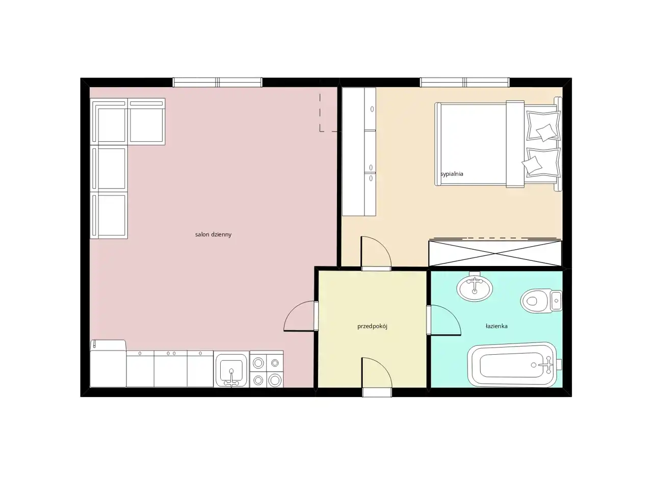 - Charakterystyka mieszkania 35.2 m2, 2 pokoje