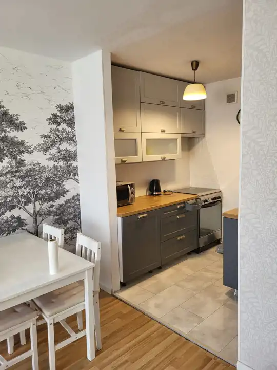 - salon z aneksem kuchennym, osobna sypialnia, łazienka z toaletą