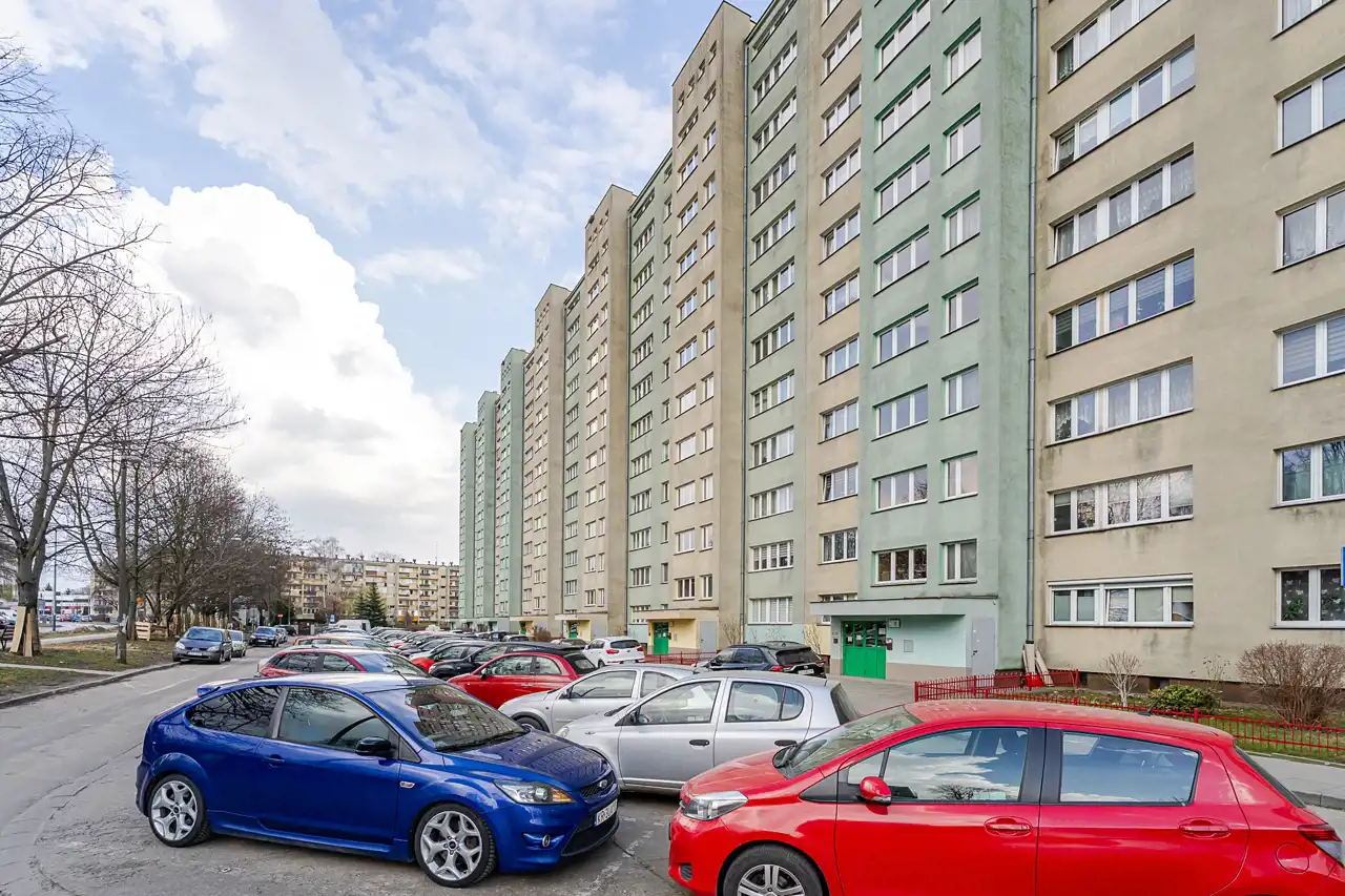 przed budynkiem znajduje się duży parking dla mieszkańców