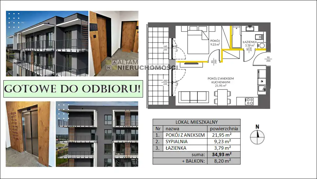 - Charakterystyka mieszkania 34.93 m2, 2 pokoje