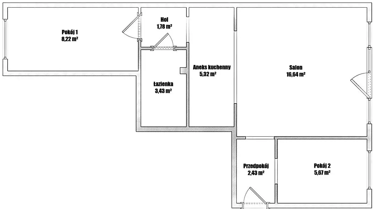 - Charakterystyka mieszkania 43.47 m2, 3 pokoje