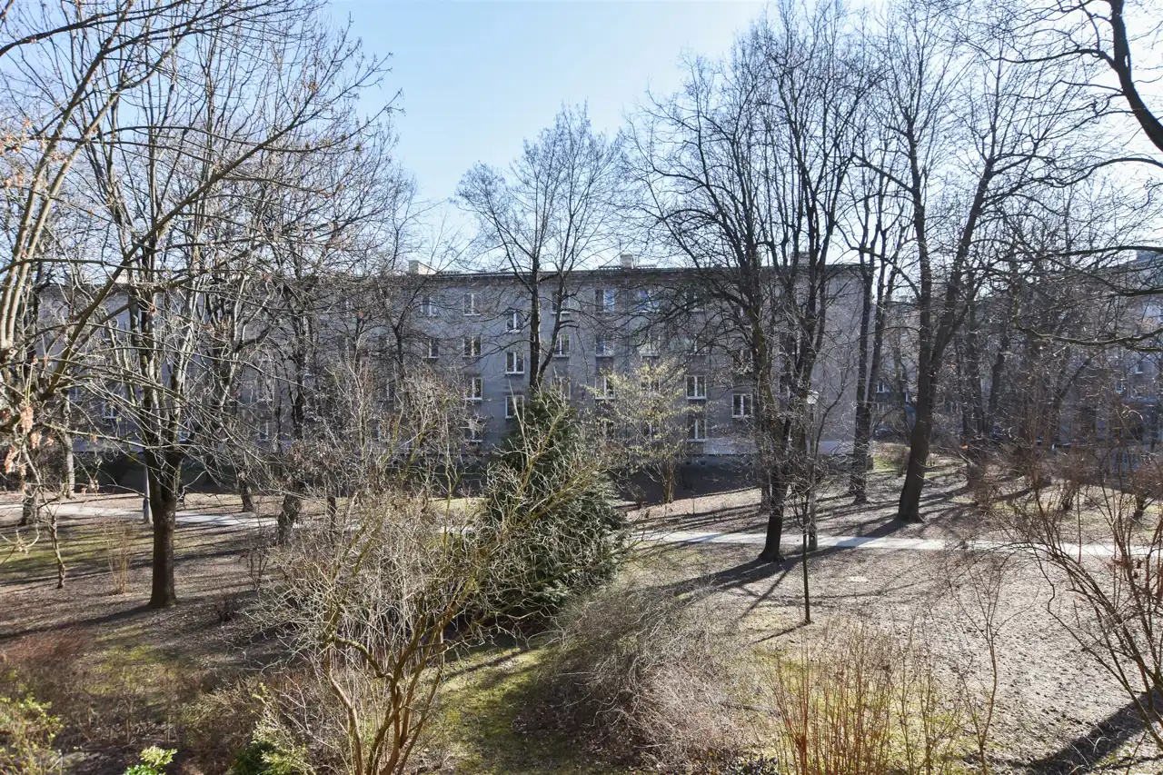 spokojna, dobrze zaplanowana okolica z szerokimi alejami i dużą ilością zieleni.