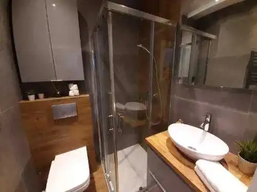 - pokój z aneksem kuchennym, łazienka z toaletą