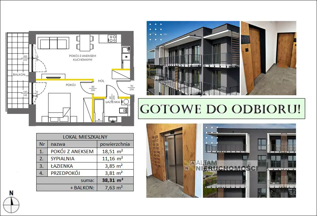o powierzchni 38,31 m² zlokalizowane na II piętrze (2/8) z szerokim balkonem.