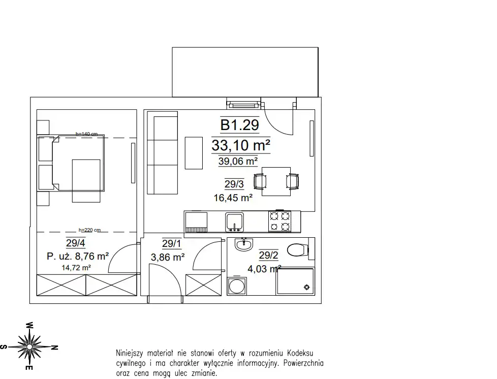 - Charakterystyka mieszkania 39.06 m2, 2 pokoje