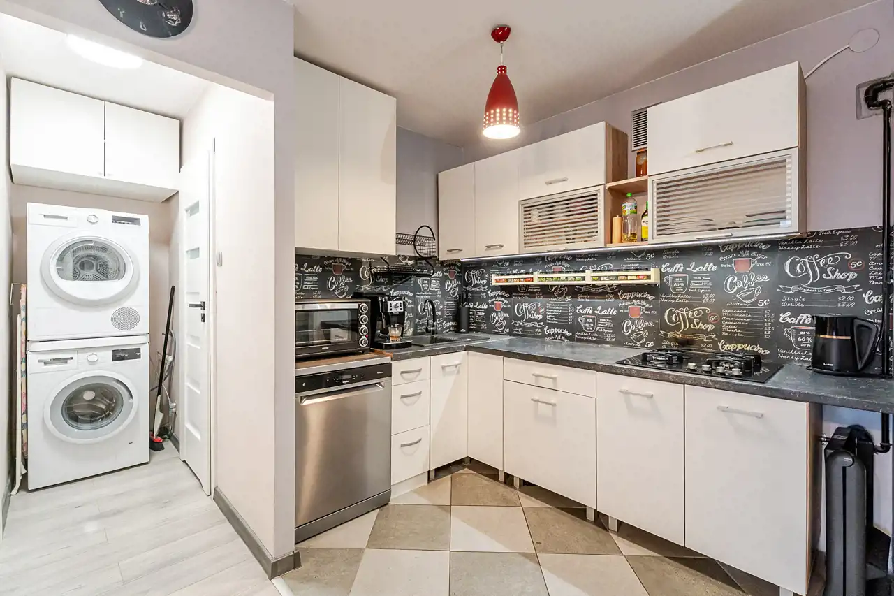 Dodatkowym atutem jest prywatny parking osiedlowy zamykany szlabanem – dostępny wyłącznie dla mieszkańców.