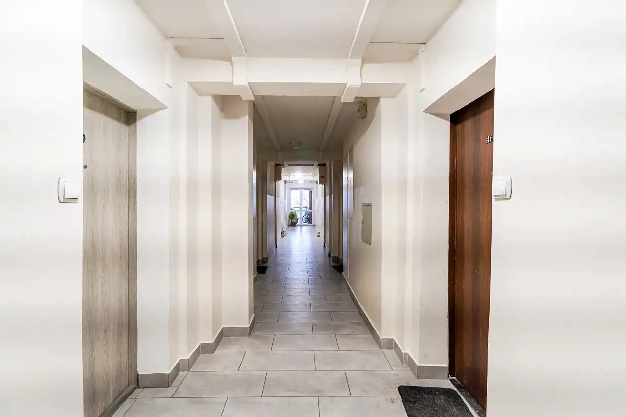 Do mieszkania przynależy piwnica o powierzchni 1,55 m². Klatka schodowa jest odnowiona, a w budynku znajdują się dwie windy. Ogrzewanie oraz ciepła woda - miejskie.