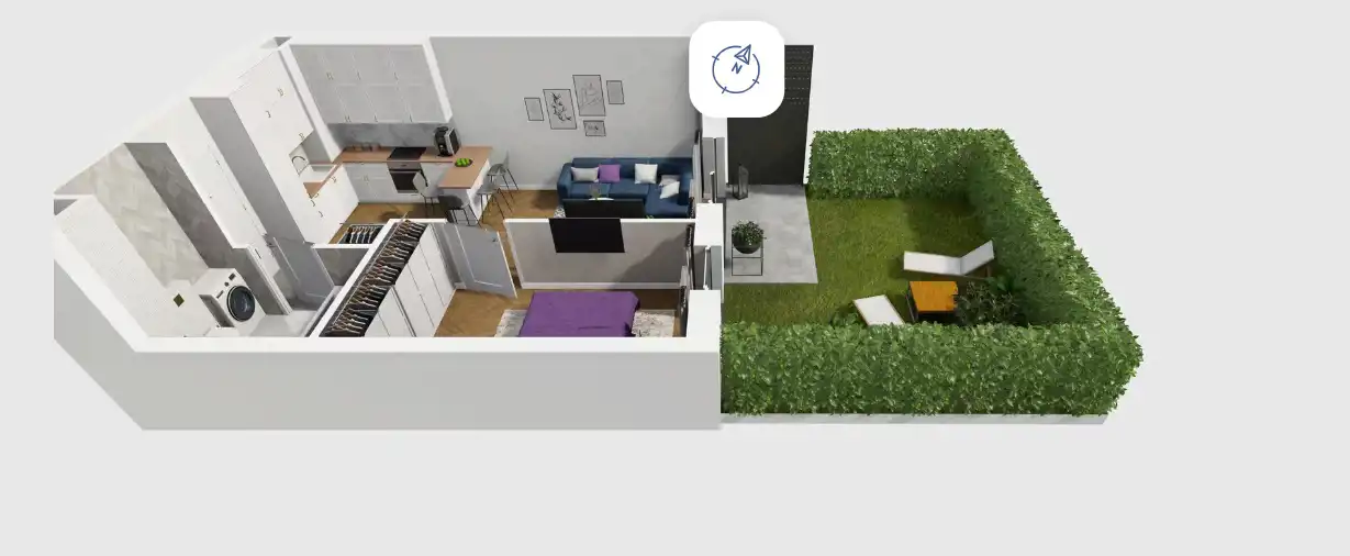 Mieszkanie składające się z salonu z aneksem kuchennym , sypialni, przedpokoju, łazienki oraz ogródka