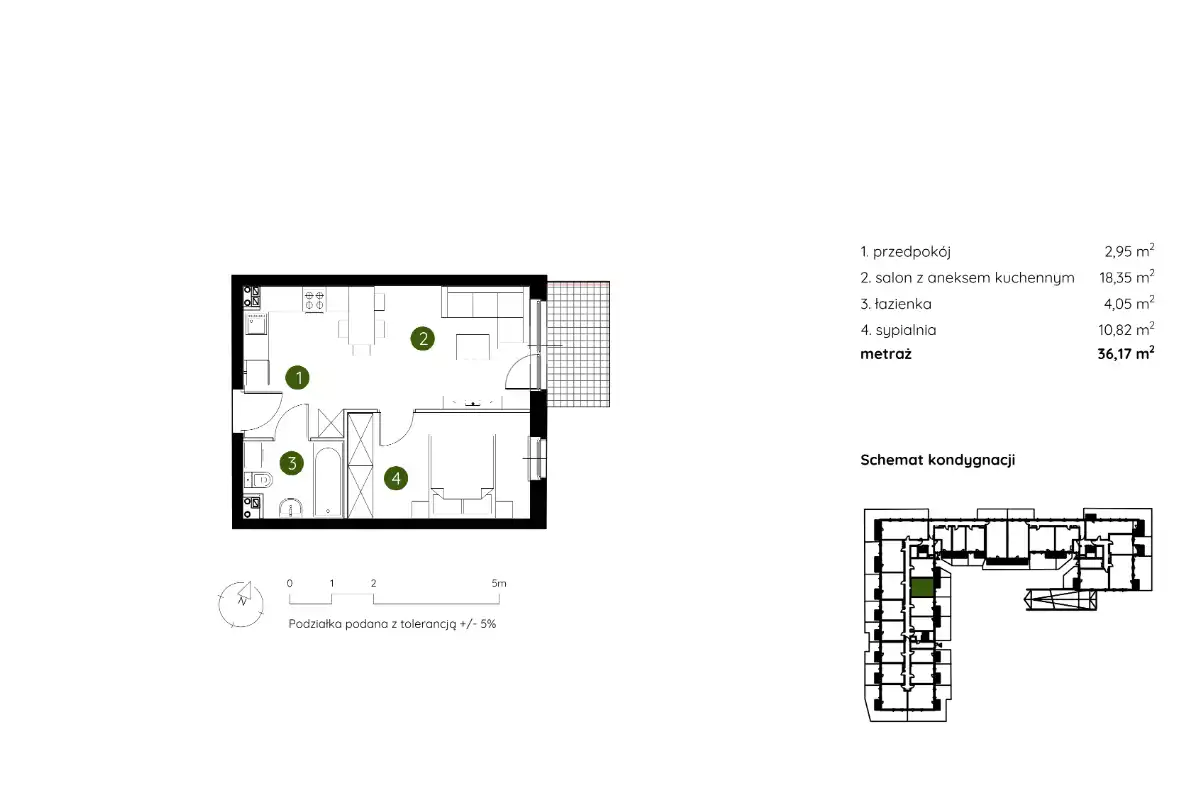 - Charakterystyka mieszkania 36.17 m2, 2 pokoje