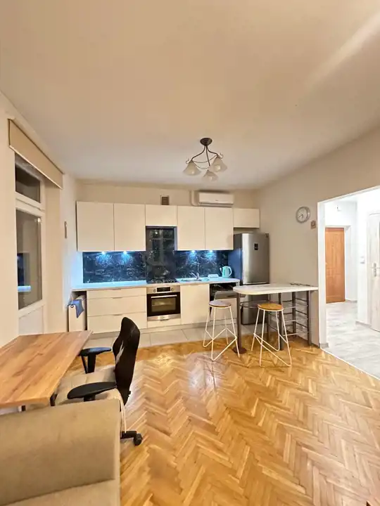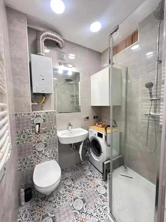 - Media Ogrzewanie: C.O. miejskie; Woda: ciepła - piecyk gazowy