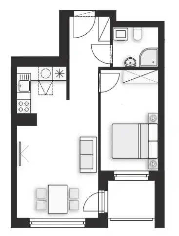 - Charakterystyka mieszkania 39.5 m2, 2 pokoje