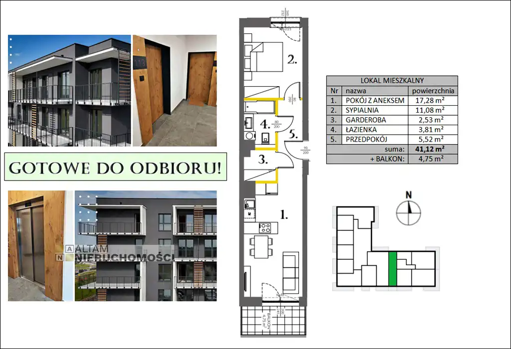 - Charakterystyka mieszkania 41.12 m2, 2 pokoje