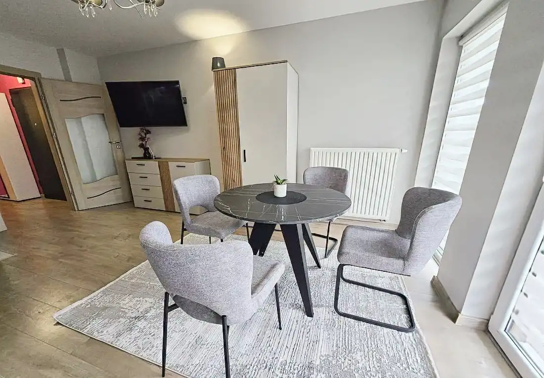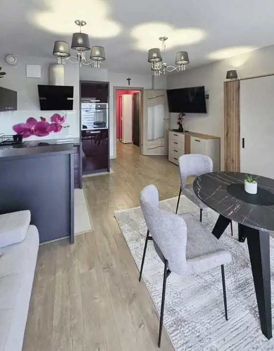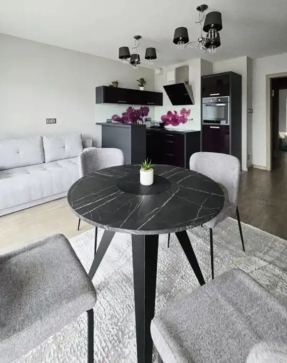 Stylistyka mieszkania wyróżniona nowoczesną estetyką oraz nowym wyposażeniem.