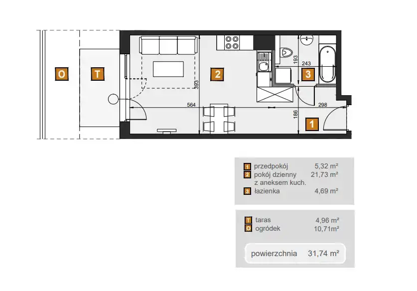 - Charakterystyka mieszkania 31.74 m2, 1 pokój