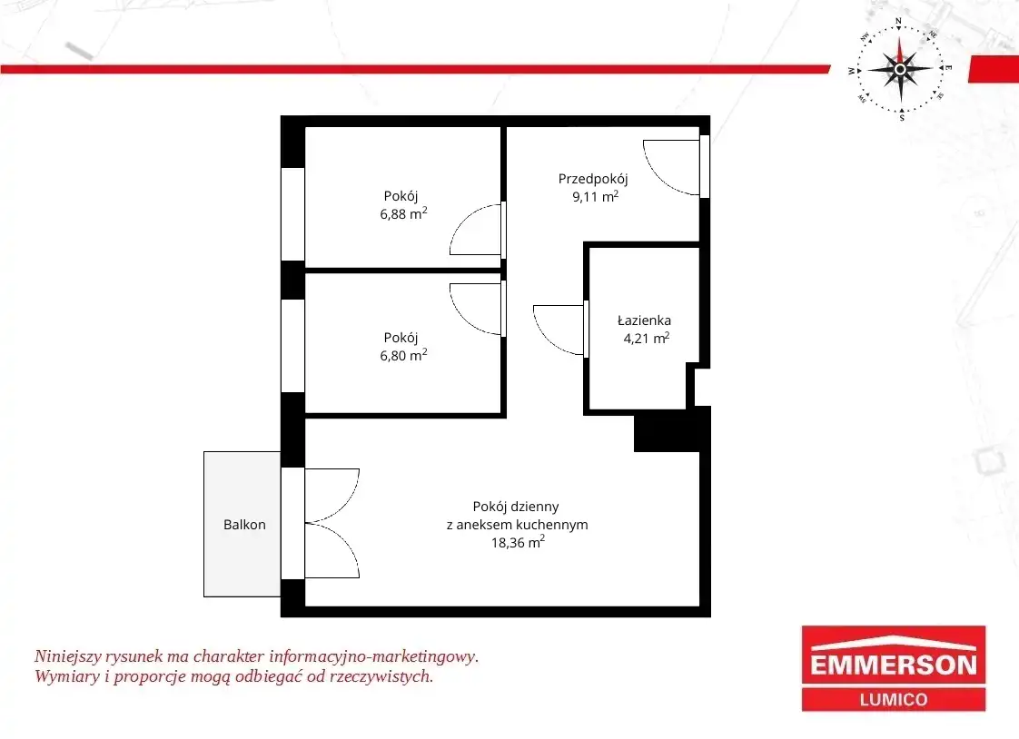 - Charakterystyka mieszkania 46.45 m2, 3 pokoje