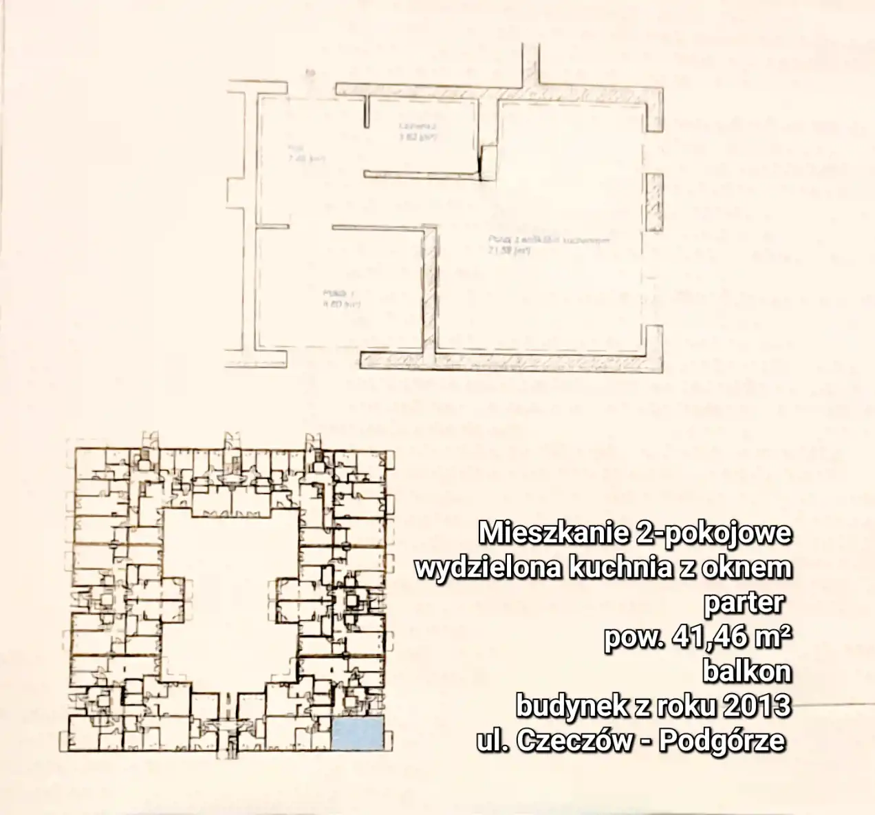 Na sprzedaż mieszkanie o powierzchni 41,46 m2, składające się z: