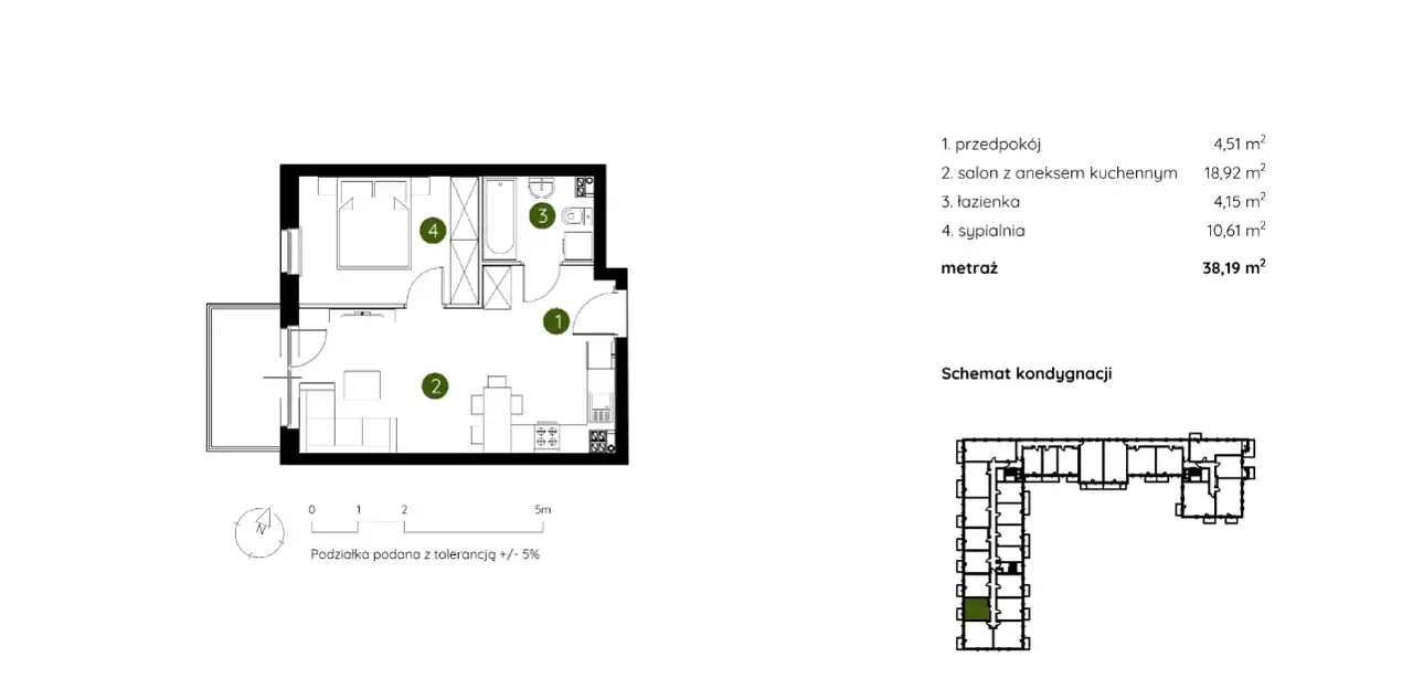 - Charakterystyka mieszkania 38.19 m2, 2 pokoje