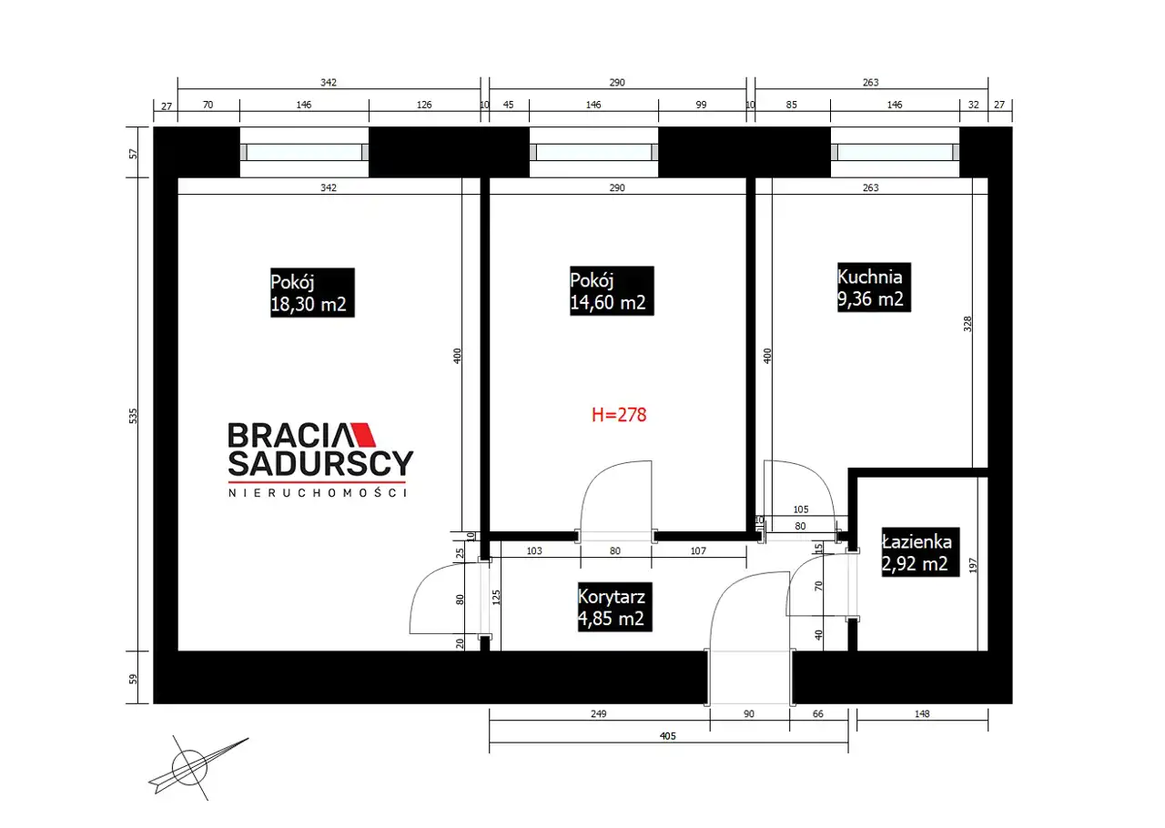 - Charakterystyka mieszkania 47.03 m2, 2 pokoje