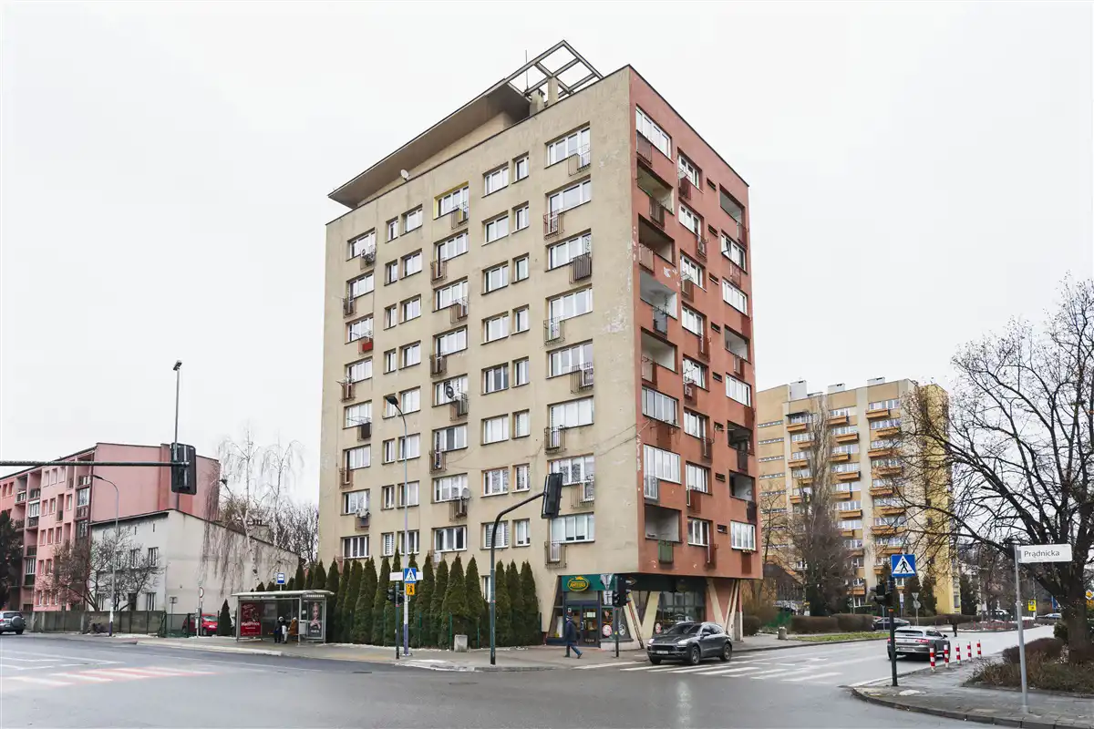 Prezentowane 2 pokojowe mieszkanie położone jest w zadbanym, ocieplonym, ogrodzonym 8 piętrowym bloku z 1966 roku, na rogu ulic Prądnickiej i Zdrowej. Budynek w technologii żelbet i cegła (nie wielka płyta).