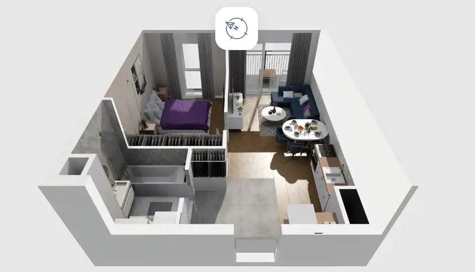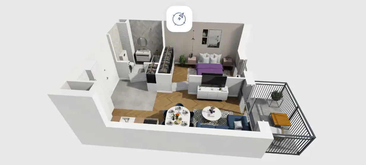 - Charakterystyka mieszkania 39.34 m2, 2 pokoje