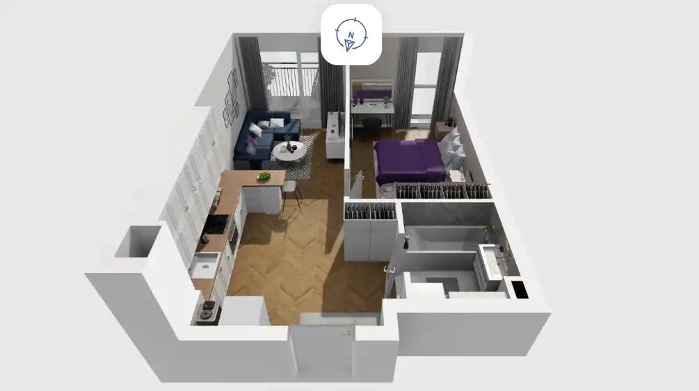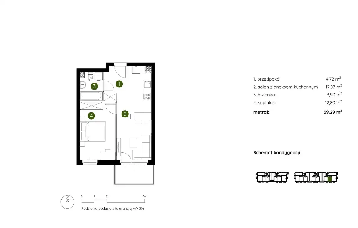 - Charakterystyka mieszkania 39.29 m2, 2 pokoje