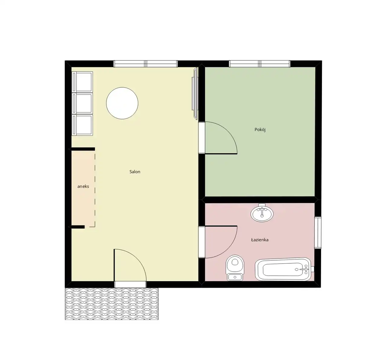Mieszkanie o powierzchni 35,10 m2 składa się z: sypialni , salonu z aneksem kuchennym , łazienki z oknem.