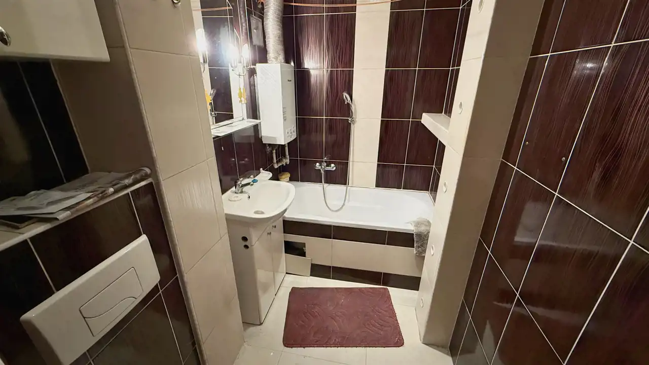 - Media Ogrzewanie: C.O. miejskie; Woda: ciepła - piecyk gazowy; Gaz: jest