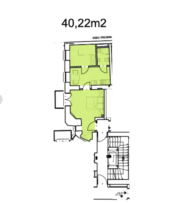 - Charakterystyka mieszkania 40.22 m2, 2 pokoje