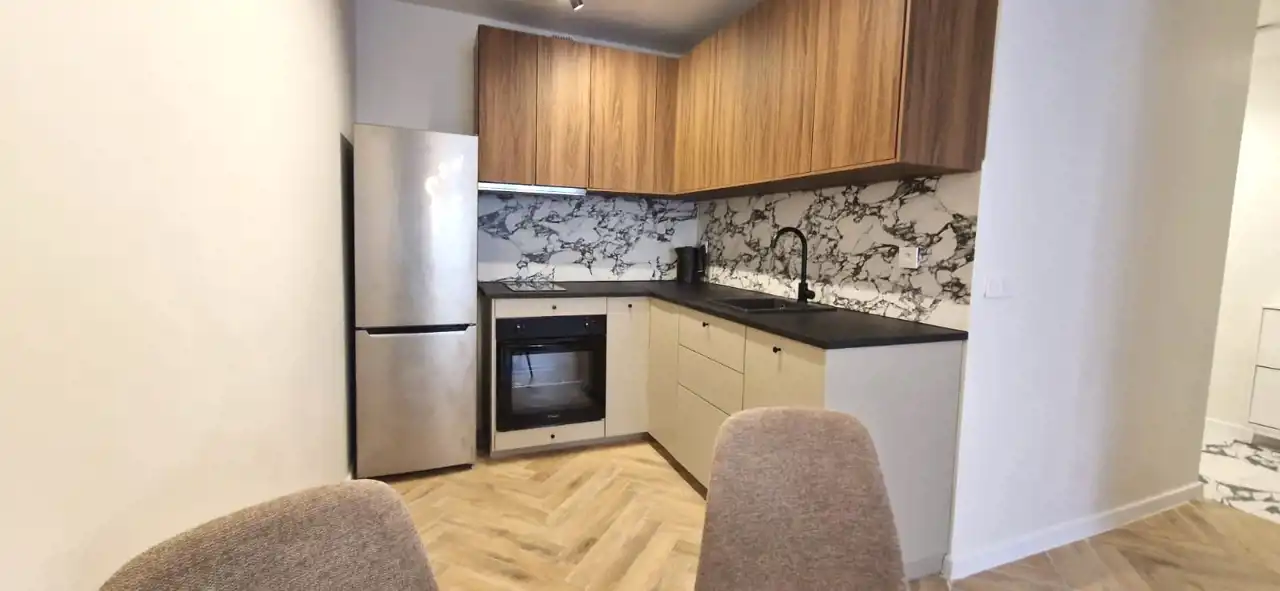 - kuchnia wyposażona w: piekarnik elektryczny, , lodówkę i zmywarkę w zabudowie, płyta indukcyjna (dwupalnikowa),