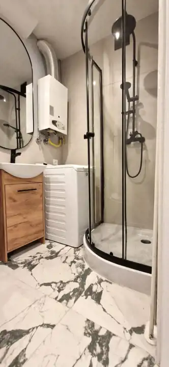 - w łazience prysznic, umywalka, wc, pralka ,