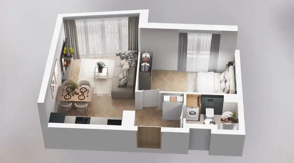 - Charakterystyka mieszkania 36.93 m2, 2 pokoje