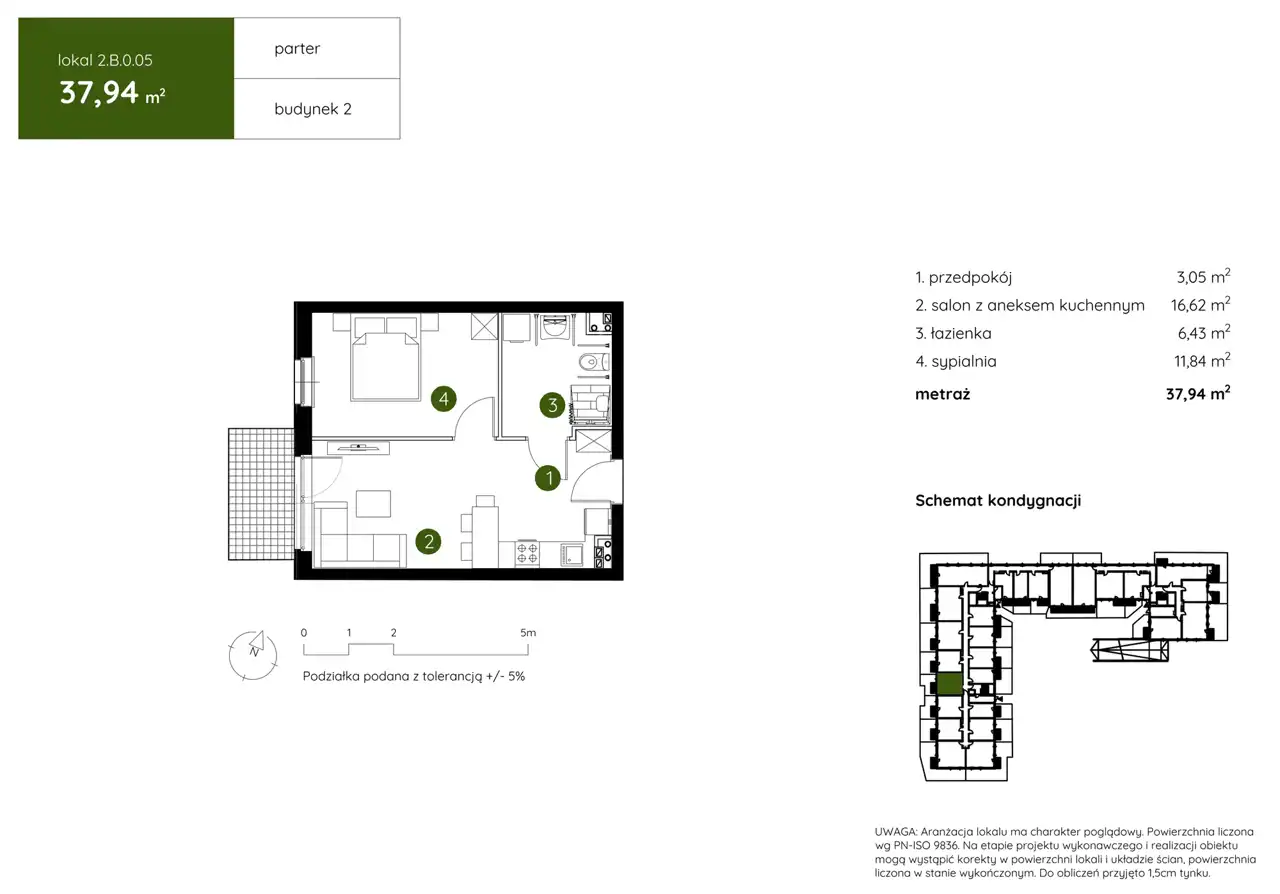 - Charakterystyka mieszkania 37.94 m2, 2 pokoje