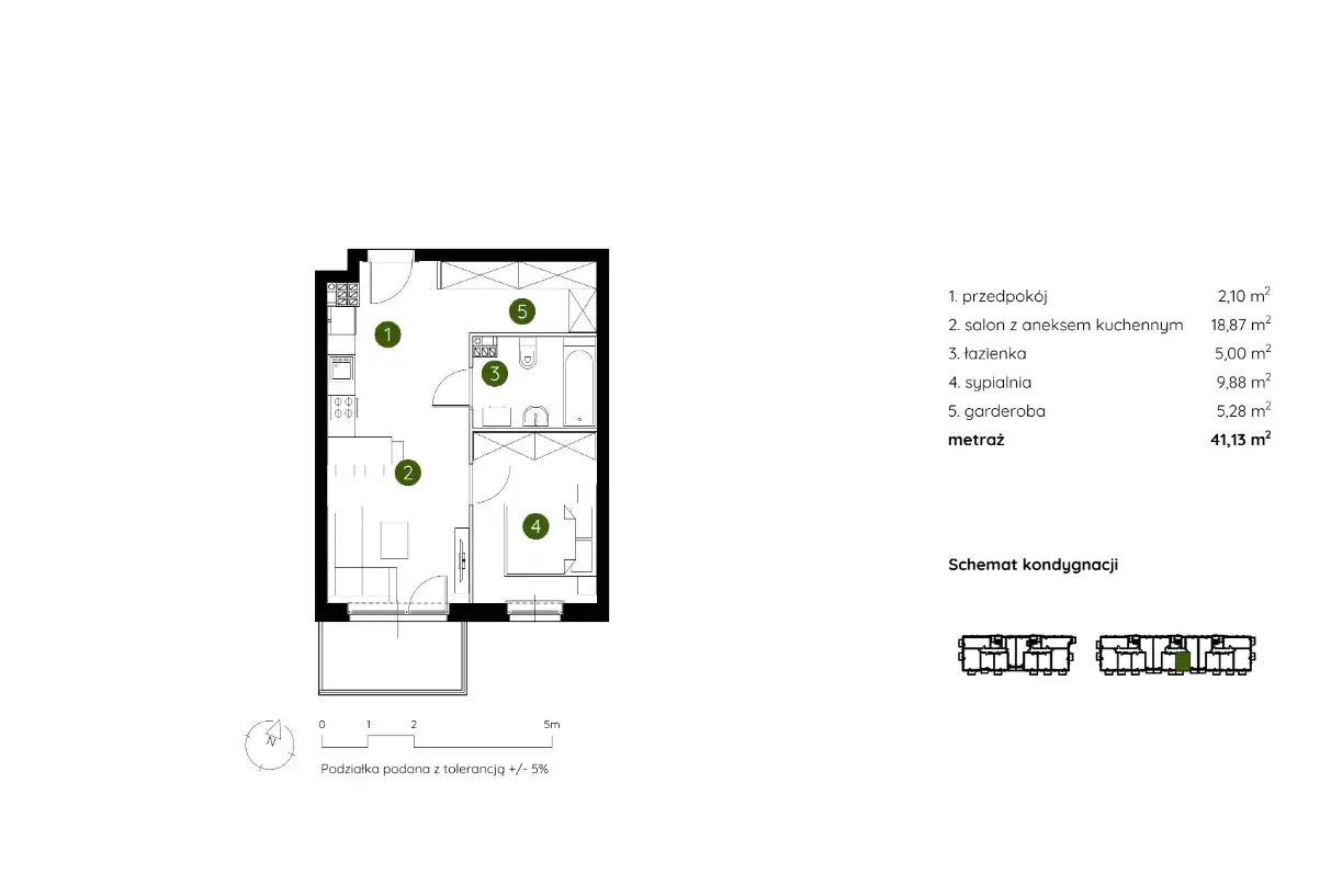 - Charakterystyka mieszkania 41.13 m2, 2 pokoje