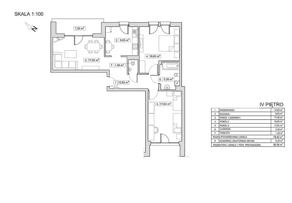 - Charakterystyka mieszkania 78.93 m2, 3 pokoje