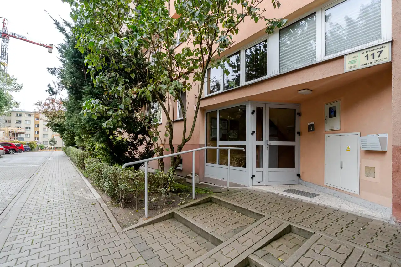 Nieruchomość znajduje się na 2 piętrze budynku z lat 60., w otoczeniu zieleni i spokojnych uliczek.