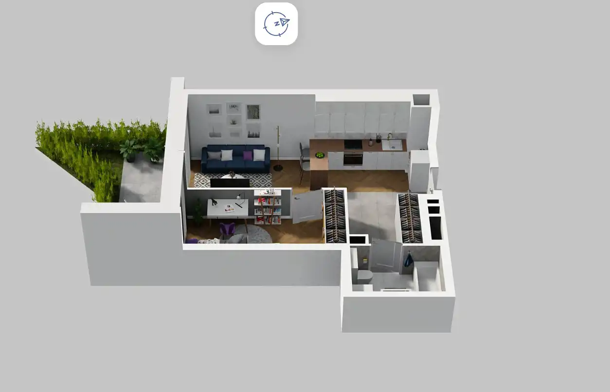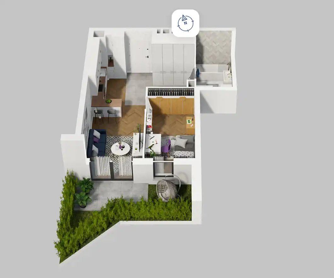 Mieszkanie składające się z salonu z aneksem kuchennym , sypialni, przedpokoju, łazienki oraz ogródka wraz z tarasem o pow. 12m2