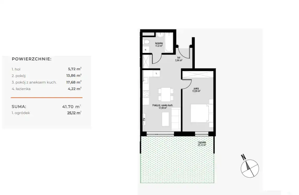 - Charakterystyka mieszkania 41.7 m2, 2 pokoje